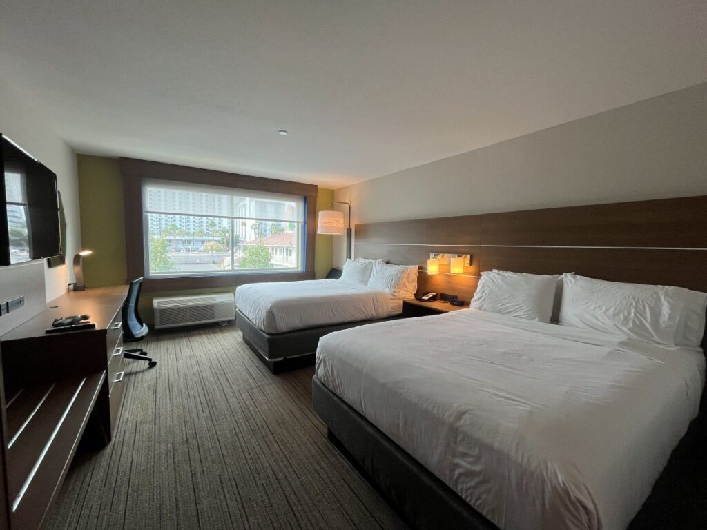 ラスベガスの宿泊費は平日と週末、またはイベントがあると価格が2~3倍違うことも珍しくありません。ホテルの値段を確認してから日程を決めるのがおすすめです。さらに多くのホテルでリゾート料金(1泊あたり30~50ドル前後)が別途必要なことが多いので要注意です。